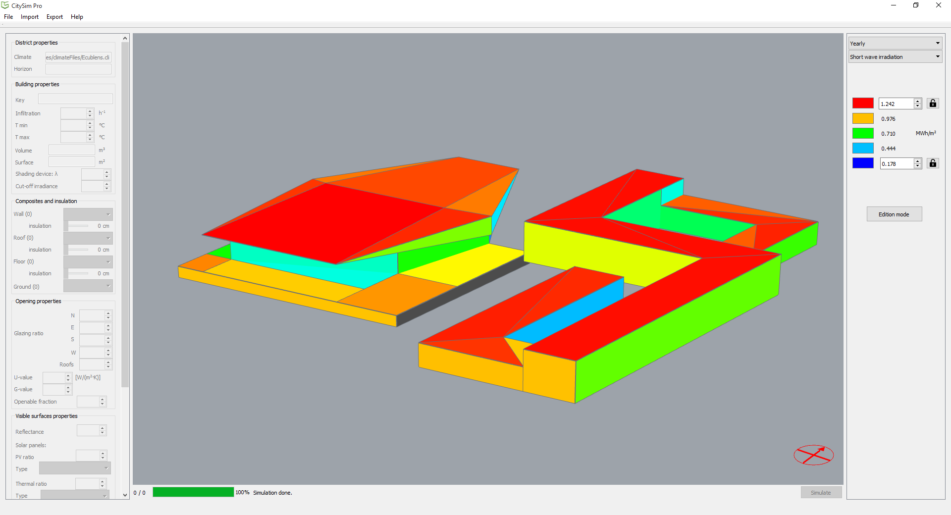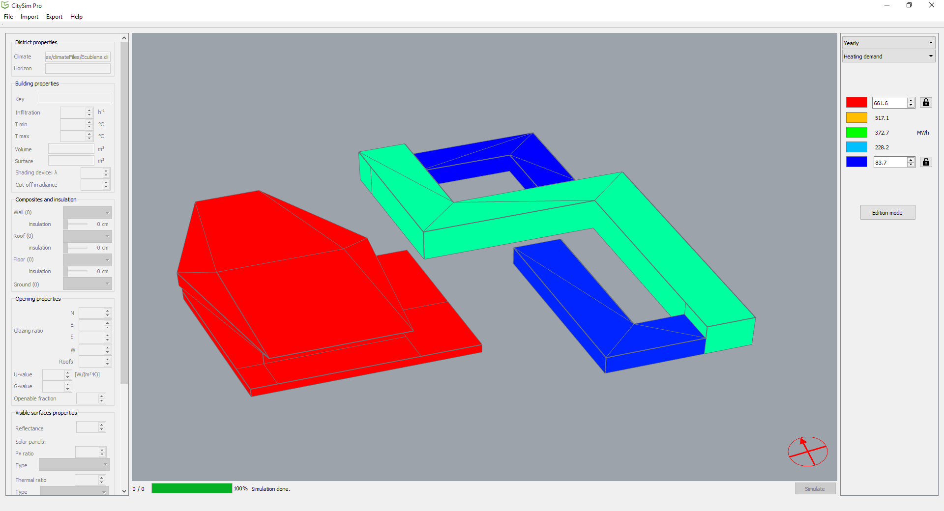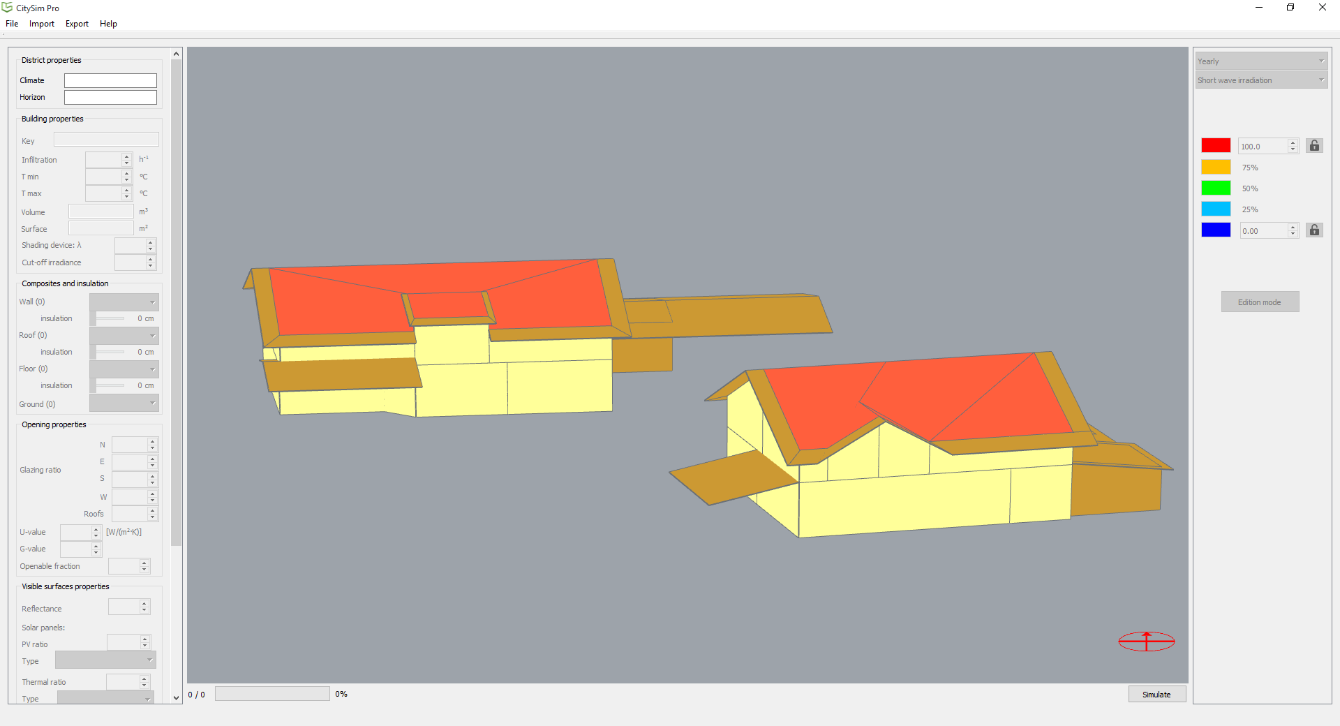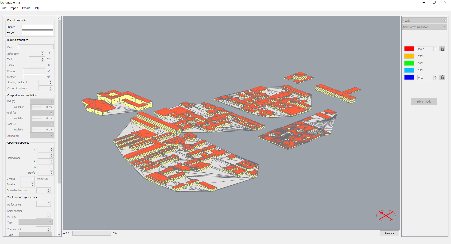 Built on top of the CitySim Solver, developed at the Solar Energy and Building Physics Laboratory of EPFL, CitySim Pro is a Graphical User Interface aiming at the simulation and optimisation of the sustainability of urban settlements.
